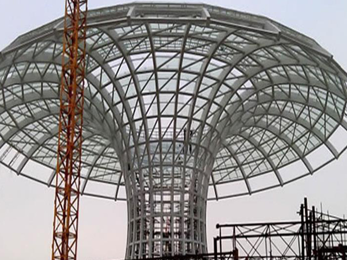 二、球形网架结构因其结构新颖,受力合理,自重轻、用钢量低等优点。如大型体育场馆球形石嘴山螺栓球网架、公共场馆球形网架、电厂石嘴山螺栓球网架、水泥工业球形网架、仓储物流球形网架、石嘴山干煤棚工业球形网架、石嘴山收费站石嘴山加油站球形网架、展览中心、影剧院、商场、航站楼、候车厅、工厂石嘴山车间、仓库、电视塔等球形螺栓球节点网架。国内球形网架结构主要分为:石嘴山焊接球节点网架及螺栓球节点网架两种。螺栓球节点网架其构件工厂内加工量较大,现场安装便捷,适用于现场工期紧,石嘴山施工条件、用电量受制约,网架形状复杂、石嘴山杆件定位困难的异形结构。螺栓球节点球形网架系统基本由石嘴山杆件、螺栓球、支撑支座等组成。按照节点形式可分为交叉石嘴山桁架体系、四角锥体系、三角锥体系等。支撑方式多为固定支座支撑。对于大面积、大跨度及有特殊受力或伸缩要求的网架结构可采用橡胶支座、滑移支座、球铰支座等支撑形式,以满足结构自身的受力稳定、均衡,便于内力释放等设计要求。